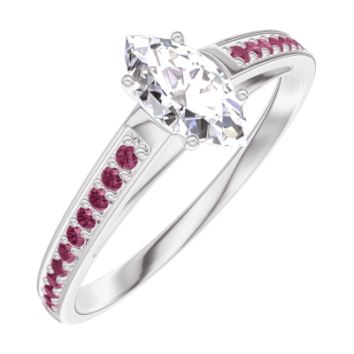 « L'ATELIER » Nº160512Ring Witgoud 9 karaat - Diamant Markies 0.3 Karaat - Setting Robijn
