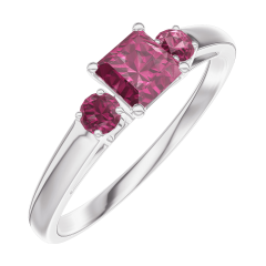 « L'ATELIER » NR. 160744Ring Witgoud 9 karaat - Robijn Prinses 0.3 Karaat - Aanleunende edelstenen Robijn
