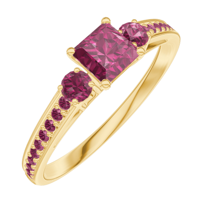 « L'ATELIER » NR. 160749Ring Geelgoud 18 karaat - Robijn Prinses 0.3 Karaat - Aanleunende edelstenen Robijn - Setting Robijn