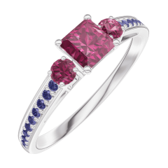 « L'ATELIER » NR. 160755Ring Witgoud 18 karaat - Robijn Prinses 0.3 Karaat - Aanleunende edelstenen Robijn - Setting Blauwe saffier