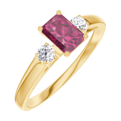 « L'ATELIER » NR. 160821Ring Geelgoud 18 karaat - Robijn Rechthoekig 0.3 Karaat - Aanleunende edelstenen Diamant