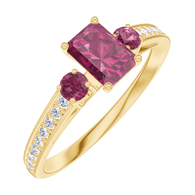 « L'ATELIER » Nº160845Ring Geelgoud 18 karaat - Robijn Rechthoekig 0.3 Karaat - Aanleunende edelstenen Robijn - Setting Diamant