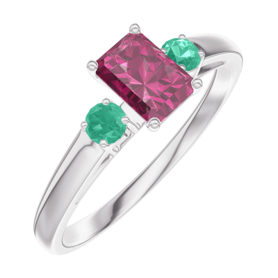 « L'ATELIER » Nº160883Ring Witgoud 18 karaat - Robijn Rechthoekig 0.3 Karaat - Aanleunende edelstenen Smaragd
