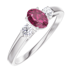 Ring Witgoud 18 karaat - Robijn Ovaal 0.3 Karaat - Aanleunende edelstenen Diamant