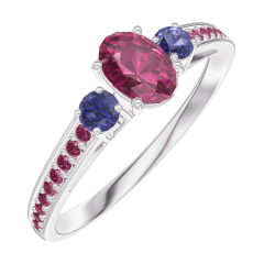 « L'ATELIER » NR. 160972Ring Witgoud 9 karaat - Robijn Ovaal 0.3 Karaat - Aanleunende edelstenen Blauwe saffier - Setting Robijn 5