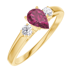 Ring Geelgoud 9 karaat - Robijn Peer 0.3 Karaat - Aanleunende edelstenen Diamant