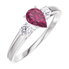 Ring Witgoud 18 karaat - Robijn Peer 0.3 Karaat - Aanleunende edelstenen Diamant