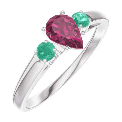 « L'ATELIER » Nº161083Ring Witgoud 18 karaat - Robijn Peer 0.3 Karaat - Aanleunende edelstenen Smaragd