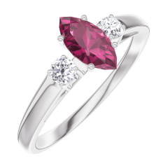 « L'ATELIER » NR. 161124Ring Witgoud 9 karaat - Robijn Markies 0.3 Karaat - Aanleunende edelstenen Diamant