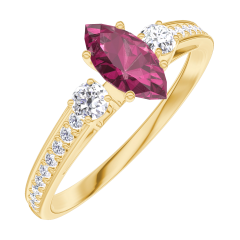 Ring Geelgoud 18 karaat - Robijn Markies 0.3 Karaat - Aanleunende edelstenen Diamant - Setting Diamant