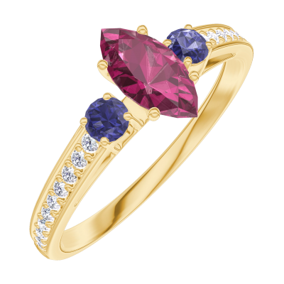 « L'ATELIER » Nº161165Ring Geelgoud 18 karaat - Robijn Markies 0.3 Karaat - Aanleunende edelstenen Blauwe saffier - Setting Diamant