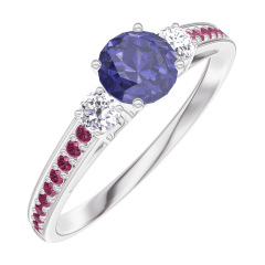 « L'ATELIER » NR. 161231Ring Witgoud 18 karaat - Blauwe saffier rond 0.3 Karaat - Aanleunende edelstenen Diamant - Setting Robijn 4.8
