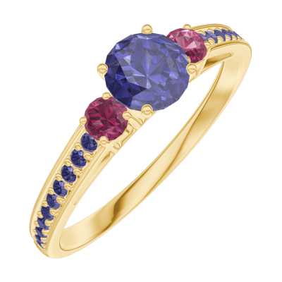 « L'ATELIER » Nº161254Ring Geelgoud 9 karaat - Blauwe saffier rond 0.3 Karaat - Aanleunende edelstenen Robijn - Setting Blauwe saffier 4.8 (36)