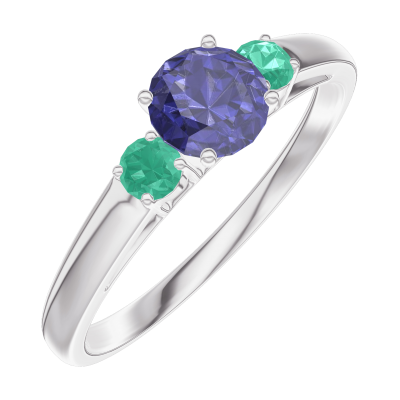 « L'ATELIER » Nº161284Ring Witgoud 9 karaat - Blauwe saffier rond 0.3 Karaat - Aanleunende edelstenen Smaragd 4.8