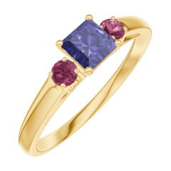 « L'ATELIER » NR. 161342Ring Geelgoud 9 karaat - Blauwe saffier Prinses 0.3 Karaat - Aanleunende edelstenen Robijn