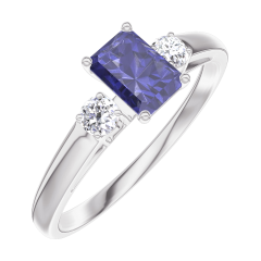« L'ATELIER » NR. 161424Ring Witgoud 9 karaat - Blauwe saffier Rechthoekig 0.3 Karaat - Aanleunende edelstenen Diamant