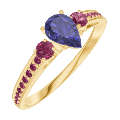 « L'ATELIER » NR. 161650Ring Geelgoud 9 karaat - Blauwe saffier Peer 0.3 Karaat - Aanleunende edelstenen Robijn - Setting Robijn