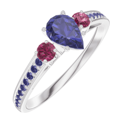 « L'ATELIER » NR. 161655Ring Witgoud 18 karaat - Blauwe saffier Peer 0.3 Karaat - Aanleunende edelstenen Robijn - Setting Blauwe saffier