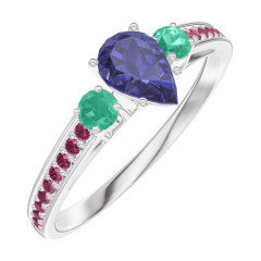 « L'ATELIER » NR. 161691Ring Witgoud 18 karaat - Blauwe saffier Peer 0.3 Karaat - Aanleunende edelstenen Smaragd - Setting Robijn