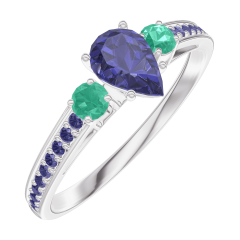 « L'ATELIER » NR. 161696Ring Witgoud 9 karaat - Blauwe saffier Peer 0.3 Karaat - Aanleunende edelstenen Smaragd - Setting Blauwe saffier