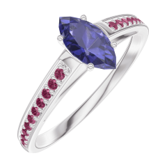 « L'ATELIER » NR. 161711Ring Witgoud 18 karaat - Blauwe saffier Markies 0.3 Karaat - Setting Robijn