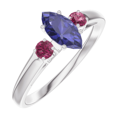 « L'ATELIER » Nº161744Ring Witgoud 9 karaat - Blauwe saffier Markies 0.3 Karaat - Aanleunende edelstenen Robijn