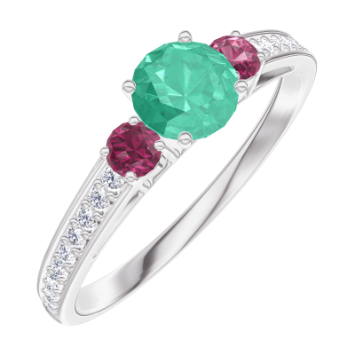 « L'ATELIER » Nº161847Ring Witgoud 18 karaat - Smaragd rond 0.3 Karaat - Aanleunende edelstenen Robijn - Setting Diamant 4.8