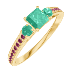 « L'ATELIER » NR. 161990Ring Geelgoud 9 karaat - Smaragd Prinses 0.3 Karaat - Aanleunende edelstenen Smaragd - Setting Robijn