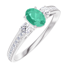 Ring Witgoud 9 karaat - Smaragd Ovaal 0.3 Karaat - Aanleunende edelstenen Diamant - Setting Diamant