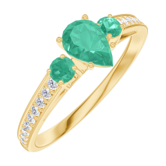 « L'ATELIER » NR. 162285Ring Geelgoud 18 karaat - Smaragd Peer 0.3 Karaat - Aanleunende edelstenen Smaragd - Setting Diamant