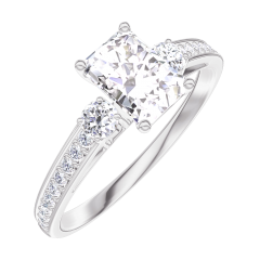 Ring Witgoud 9 karaat - Diamant Rechthoekig 0.5 Karaat - Aanleunende edelstenen Diamant - Setting Diamant