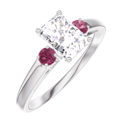 « L'ATELIER » Nº162643Ring Witgoud 18 karaat - Diamant Rechthoekig 0.5 Karaat - Aanleunende edelstenen Robijn