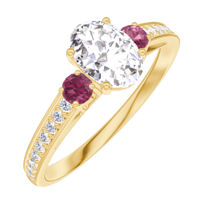 « L'ATELIER » Nº162745Ring Geelgoud 18 karaat - Diamant Ovaal 0.5 Karaat - Aanleunende edelstenen Robijn - Setting Diamant
