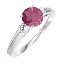 Ring Witgoud 18 karaat - Robijn rond 0.5 Karaat - Aanleunende edelstenen Diamant