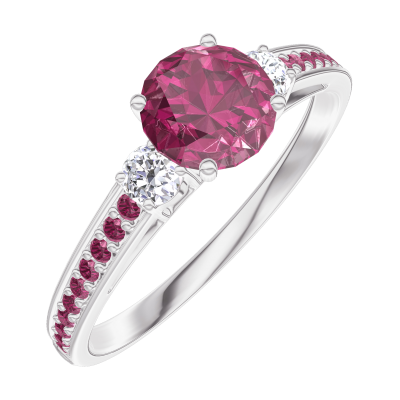 « L'ATELIER » Nº163031Ring Witgoud 18 karaat - Robijn rond 0.5 Karaat - Aanleunende edelstenen Diamant - Setting Robijn 4.9