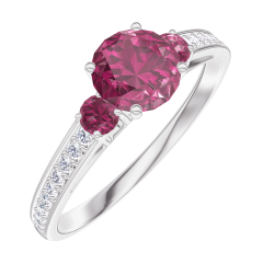 « L'ATELIER » NR. 163047Ring Witgoud 18 karaat - Robijn rond 0.5 Karaat - Aanleunende edelstenen Robijn - Setting Diamant 4.8