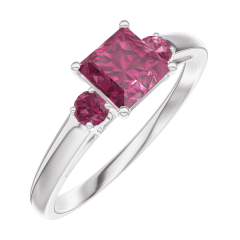 « L'ATELIER » NR. 163143Ring Witgoud 18 karaat - Robijn Prinses 0.5 Karaat - Aanleunende edelstenen Robijn