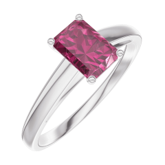 « L'ATELIER » NR. 163204Ring Witgoud 9 karaat - Robijn Rechthoekig 0.5 Karaat