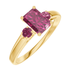 Ring Geelgoud 18 karaat - Robijn Rechthoekig 0.5 Karaat - Aanleunende edelstenen Robijn