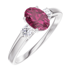 « L'ATELIER » NR. 163324Ring Witgoud 9 karaat - Robijn Ovaal 0.5 Karaat - Aanleunende edelstenen Diamant 5