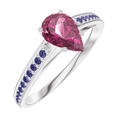 « L'ATELIER » Nº163415Ring Witgoud 18 karaat - Robijn Peer 0.5 Karaat - Setting Blauwe saffier