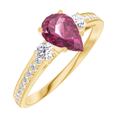 Ring Geelgoud 18 karaat - Robijn Peer 0.5 Karaat - Aanleunende edelstenen Diamant - Setting Diamant