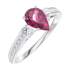 « L'ATELIER » NR. 163428Ring Witgoud 9 karaat - Robijn Peer 0.5 Karaat - Aanleunende edelstenen Diamant - Setting Diamant