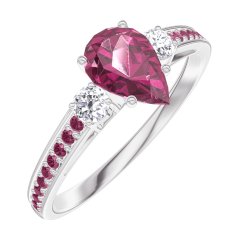 Ring Witgoud 18 karaat - Robijn Peer 0.5 Karaat - Aanleunende edelstenen Diamant - Setting Robijn