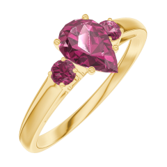 Ring Geelgoud 9 karaat - Robijn Peer 0.5 Karaat - Aanleunende edelstenen Robijn