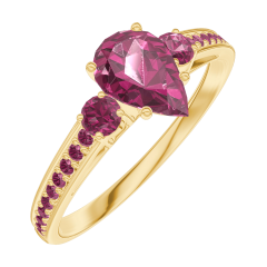 Ring Geelgoud 18 karaat - Robijn Peer 0.5 Karaat - Aanleunende edelstenen Robijn - Setting Robijn