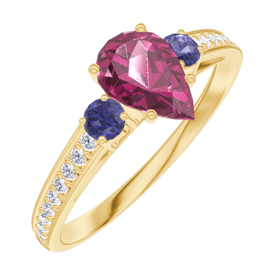 « L'ATELIER » Nº163465Ring Geelgoud 18 karaat - Robijn Peer 0.5 Karaat - Aanleunende edelstenen Blauwe saffier - Setting Diamant