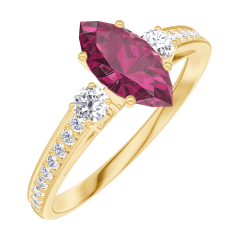 « L'ATELIER » NR. 163525Ring Geelgoud 18 karaat - Robijn Markies 0.5 Karaat - Aanleunende edelstenen Diamant - Setting Diamant