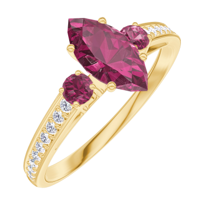 « L'ATELIER » Nº163545Ring Geelgoud 18 karaat - Robijn Markies 0.5 Karaat - Aanleunende edelstenen Robijn - Setting Diamant