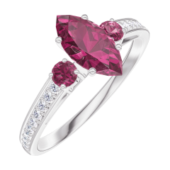 Ring Witgoud 18 karaat - Robijn Markies 0.5 Karaat - Aanleunende edelstenen Robijn - Setting Diamant